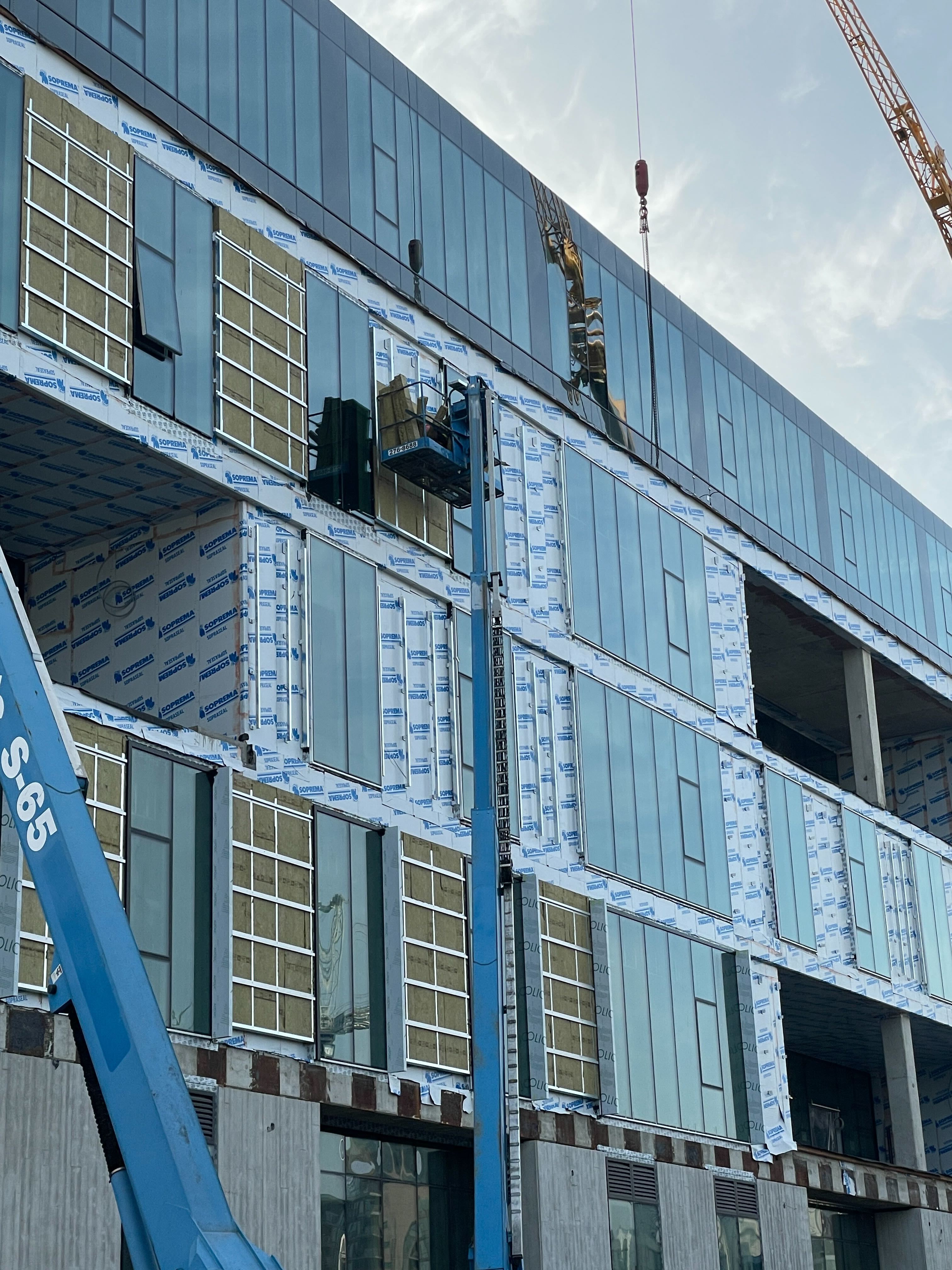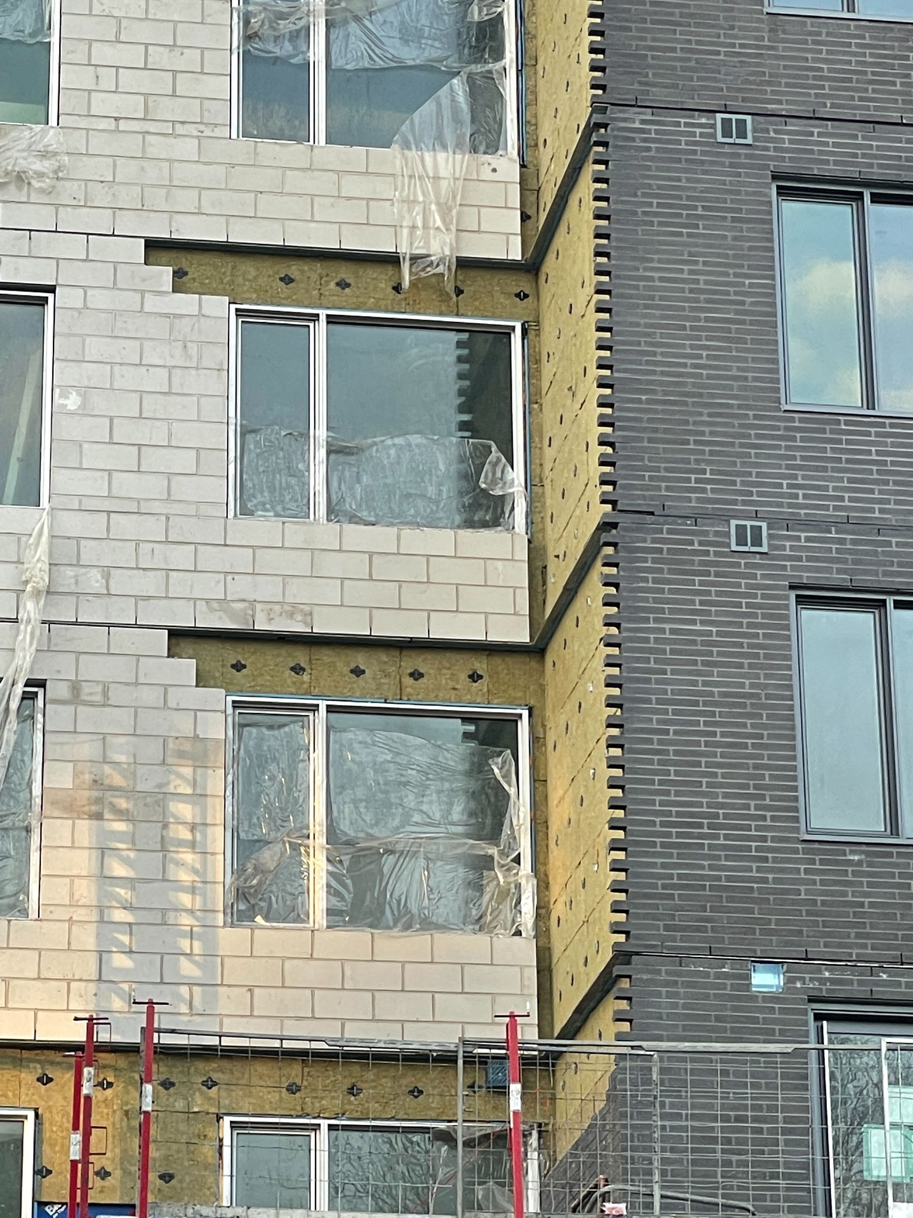 Mineral fibre boards (like stone wool) are made by melting rock into fibres and compressing them into dense, semi-rigid boards. They’re non-combustible, vapour permeable, water-repellent, and great for acoustic performance, making them the safer and often preferred option for mid- and high-rise buildings where fire performance is heavily scrutinised. In fact, modern codes increasingly expect non-combustible insulation in cladding assemblies, especially after events like Grenfell. Mineral fibre is often used to form vertical and horizontal fire breaks, helping slow or stop flame spread behind the cladding.