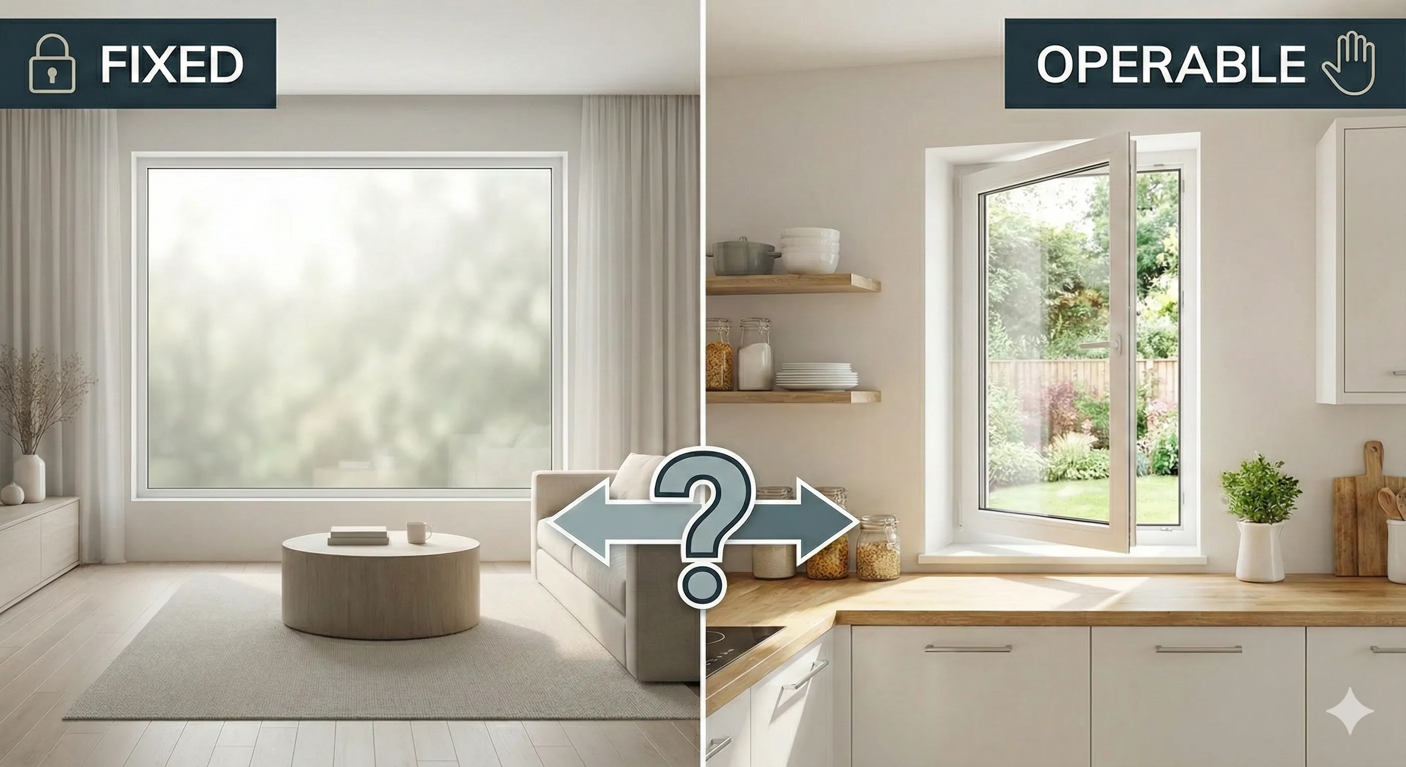 Every project needs to ask: does this window need to open, and how does it need to open? Fixed windows are easiest to detail, most airtight/weathertight, and most energy-efficient. But when operability is needed: